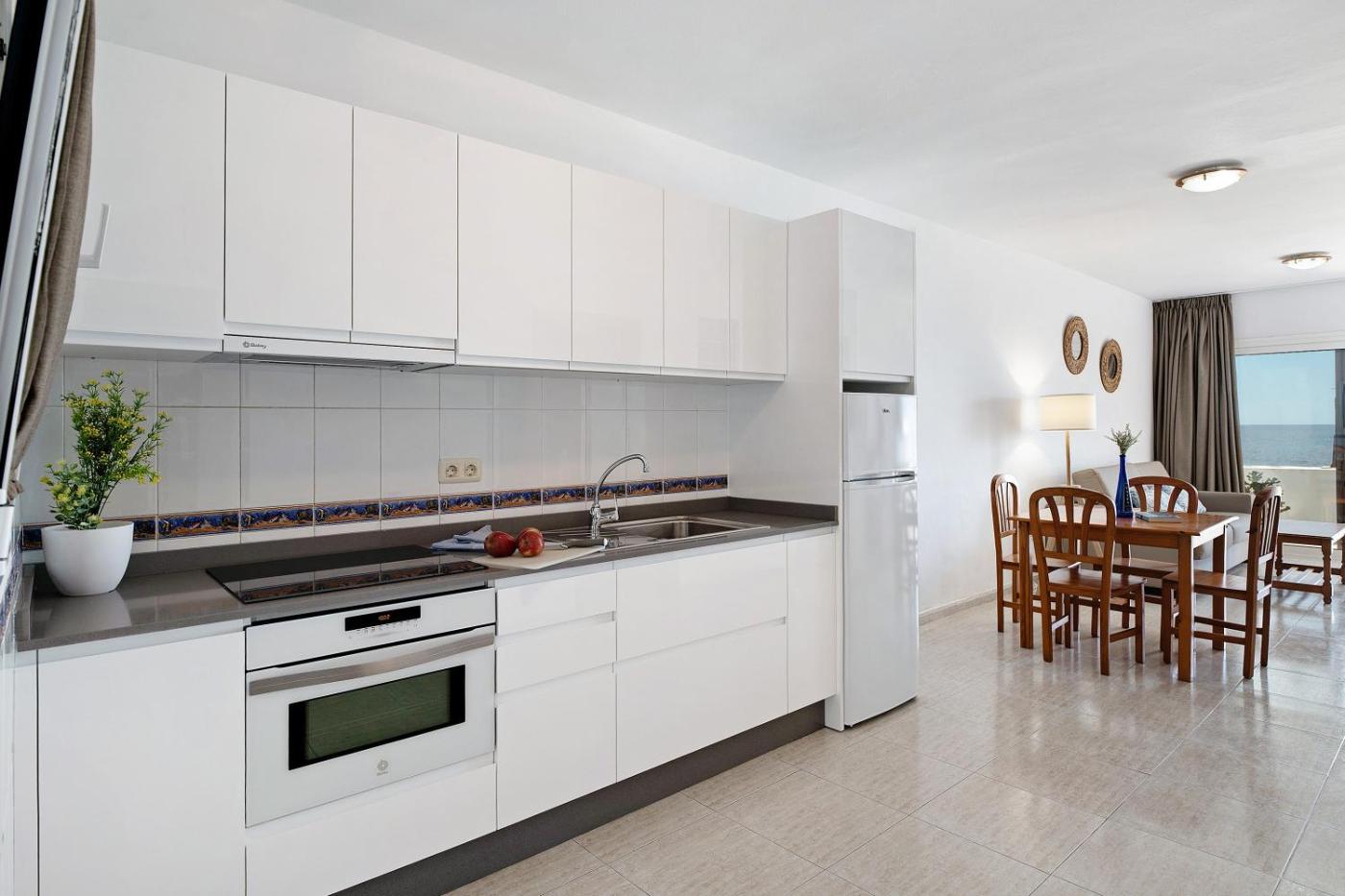 Apartamento Deluxe de 2 dormitorios con vistas al mar. This spacious apartment is comprised of 2 bedrooms, kitchen, a terrace and 1 bathroom with a hairdryer. The well-equipped kitchen features kitchenware, an oven, a microwave and a toaster. The apartment offers a TV, a private entrance, a coffee machine, a high chair for children as well as sea views. The unit offers 4 beds.